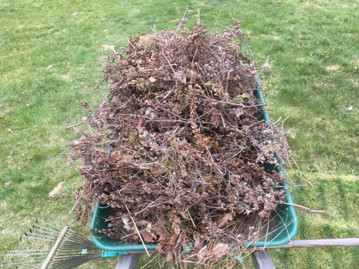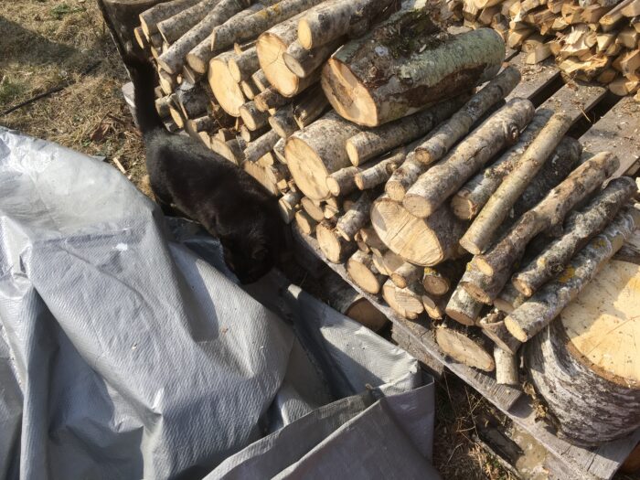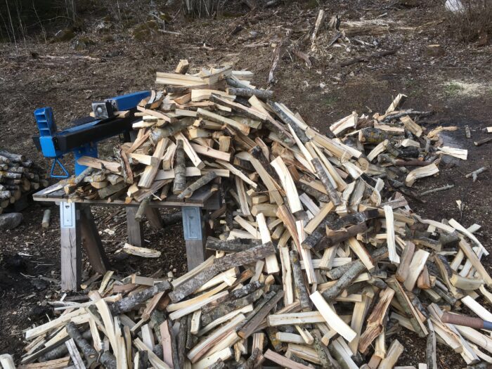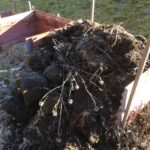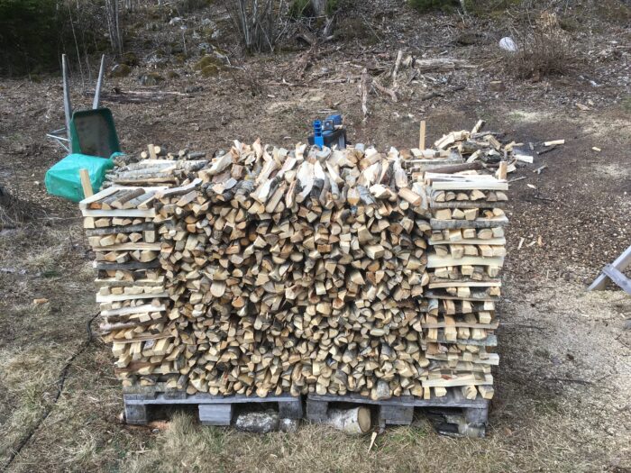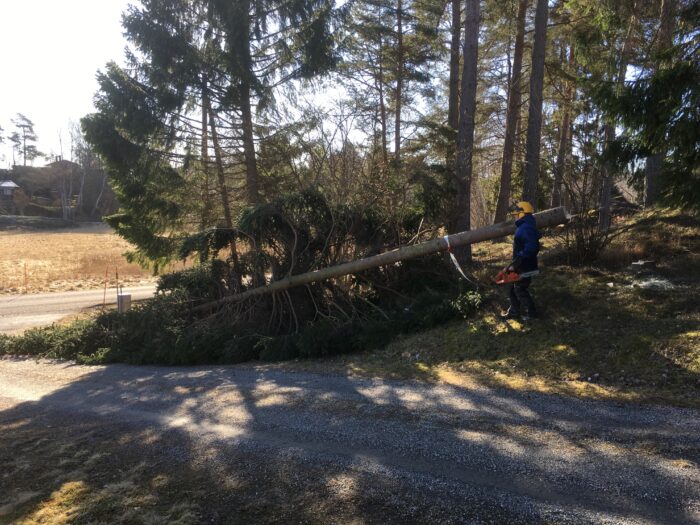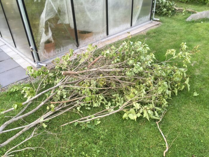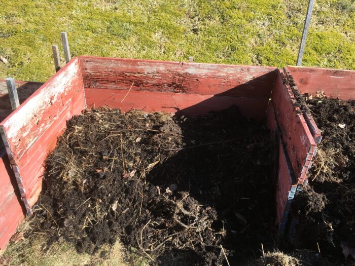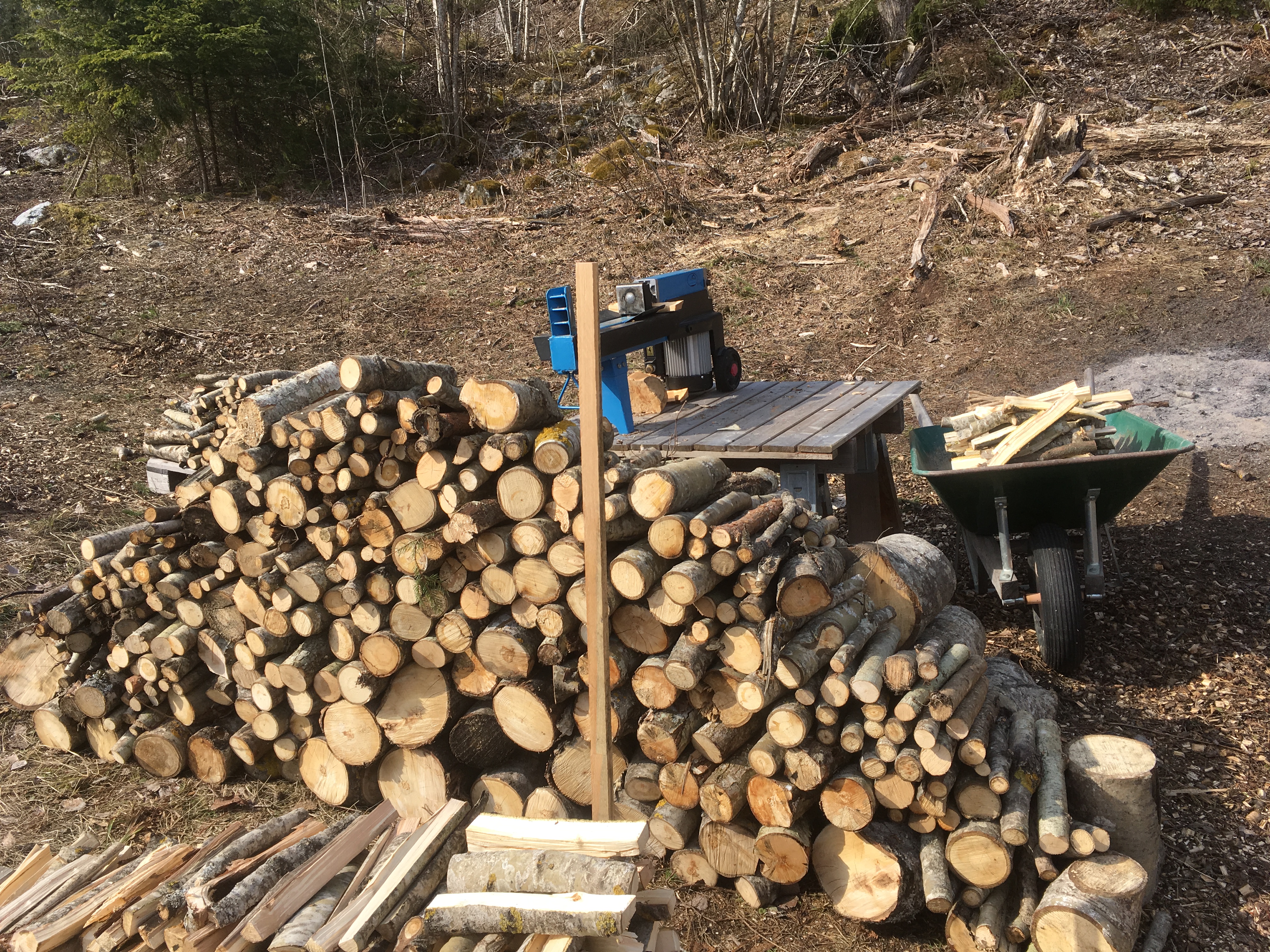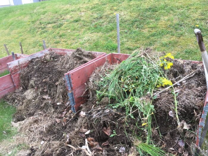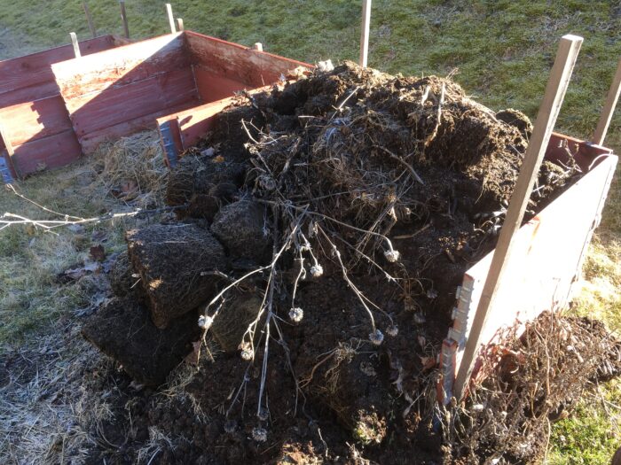 Komposten har överlevt vintern. Nu är det dags att flytta över till nästa ”instans”. Vi passar på att fälla ett träd också.