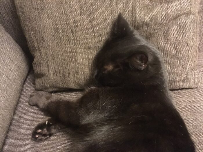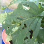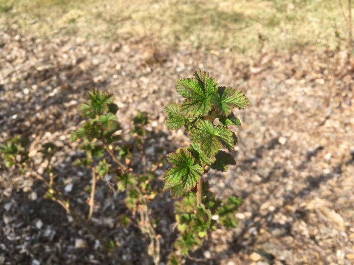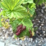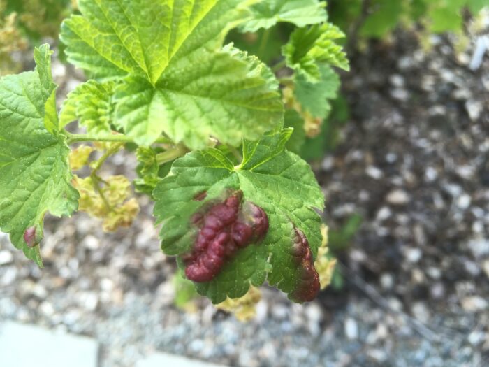 Vinbärsbuskarna är angripna av något. Vi plockar av mängder av blad och slänger.