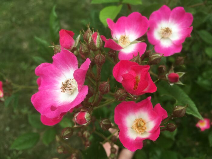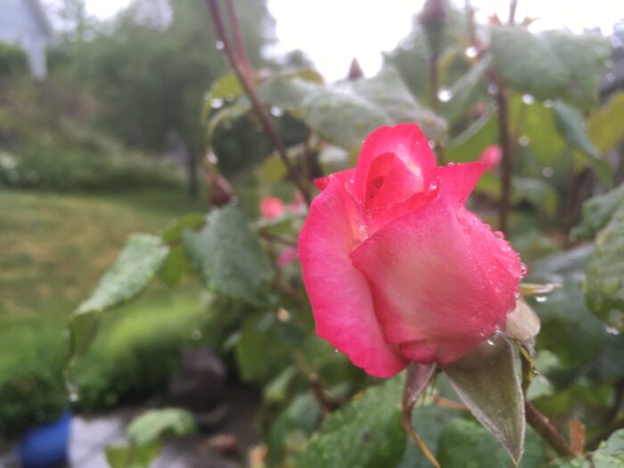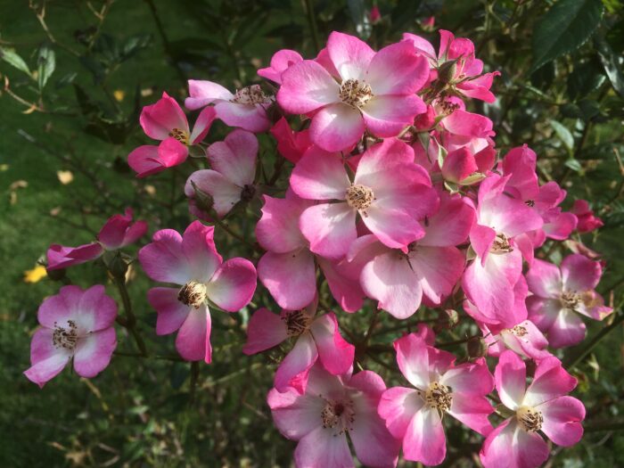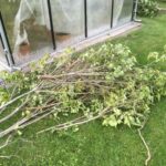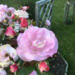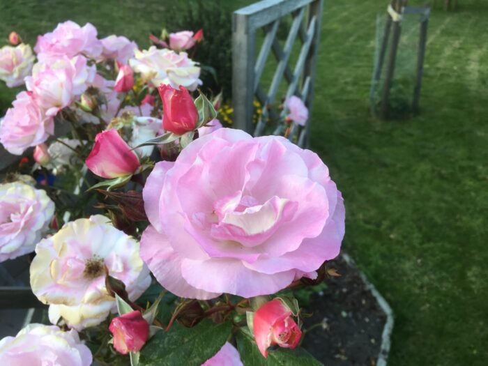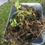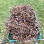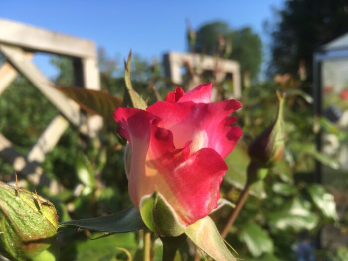 Vi rensar upp rabatten vid växthuset och klipper rosor.