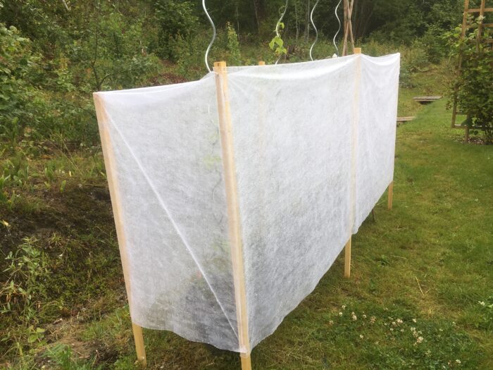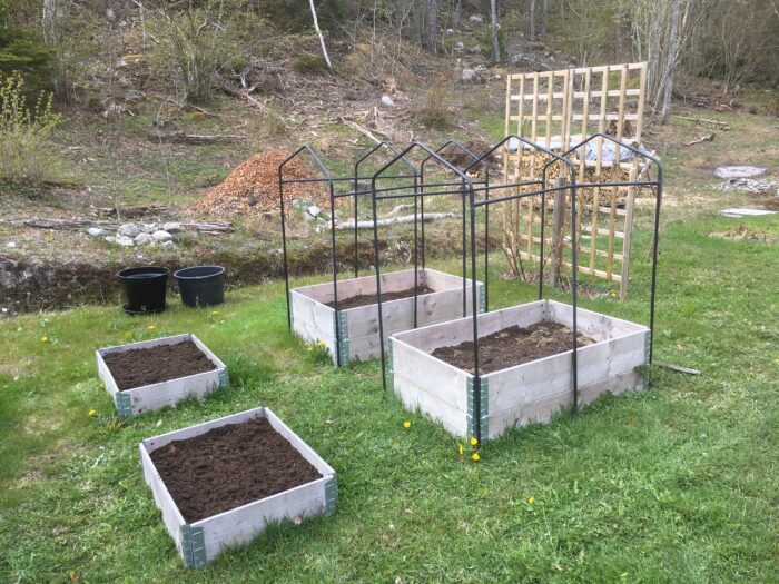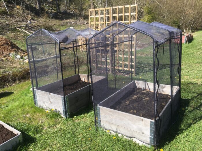 Dags att så morötter, palsternacka, bönor och ärtor. Sådden skyddas mot rådjur med nät.