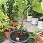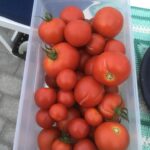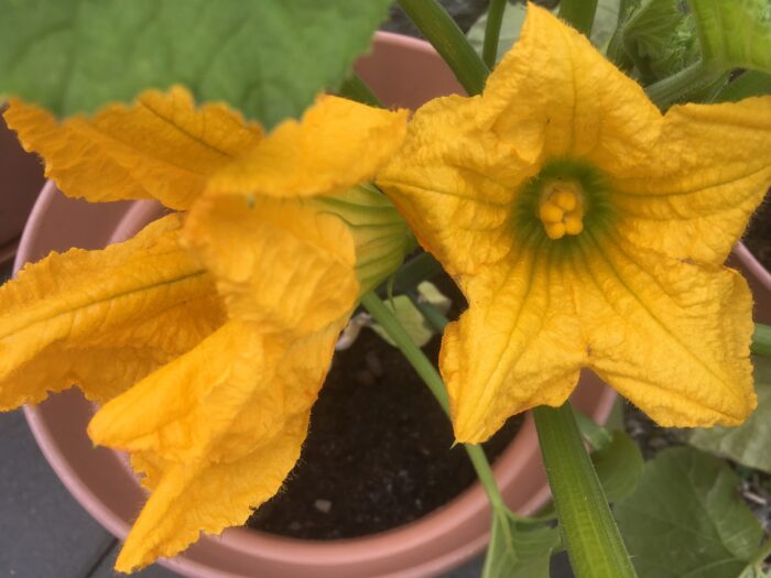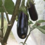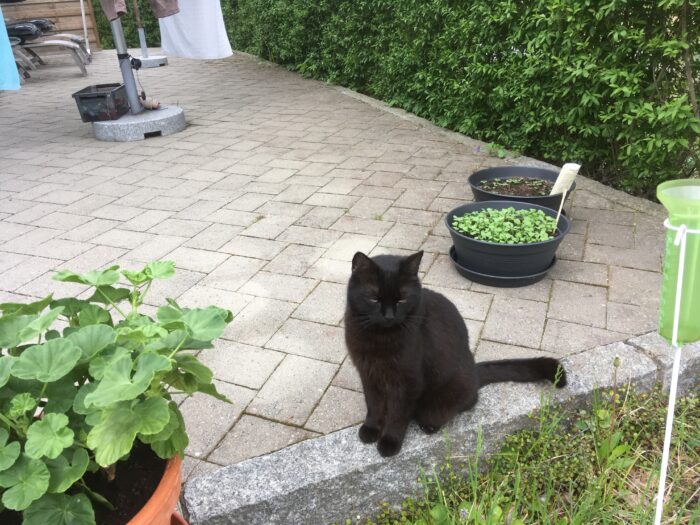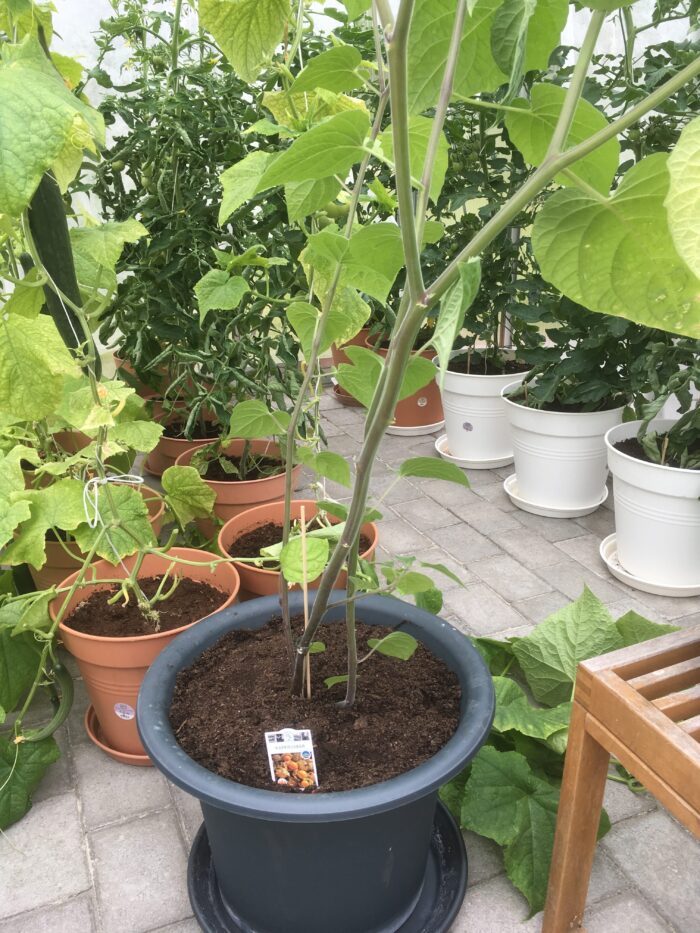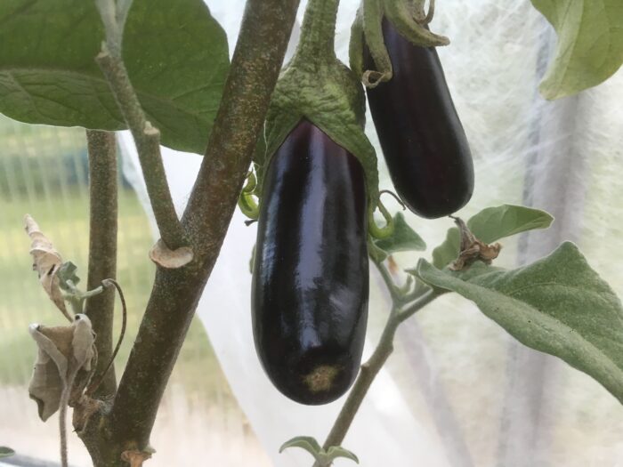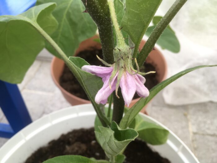Nu börjar vi skörda tomater. De har växt konstigt i år, spruckit och möglat. Vi läser på och konstaterar att vattning borde ske på morgonen för att hålla någorlunda jämnt fuktighet i krukorna. Ett par aubergine börjar bli klara för skörd ocskå!