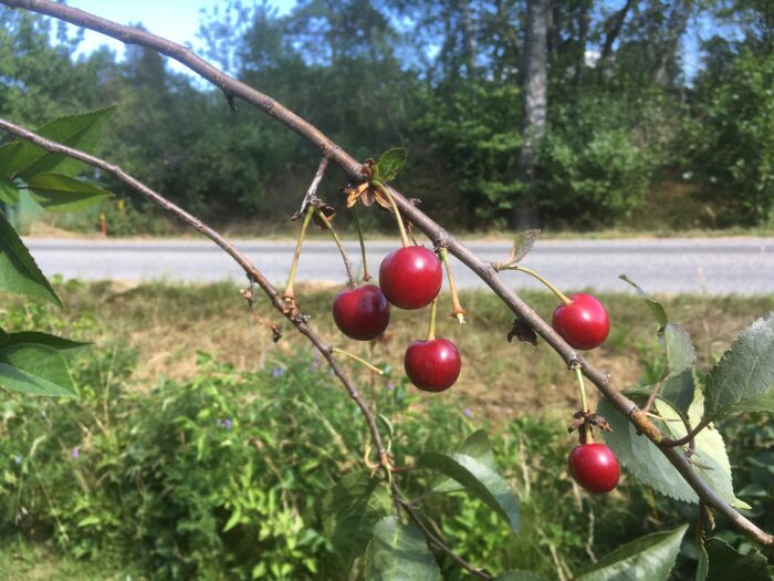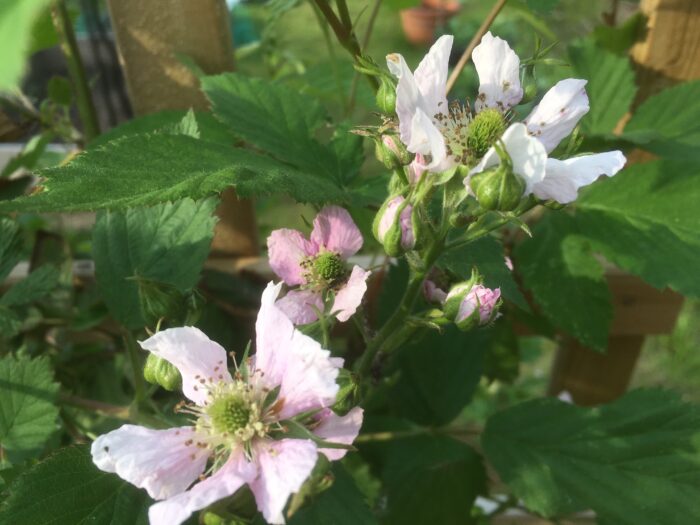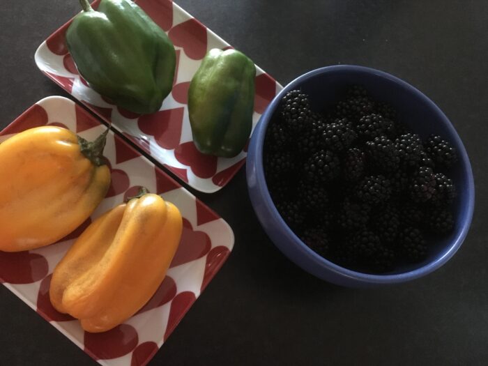 Björnbären blommar kraftfullt, det bådar gott! De första kantarellerna har plockats och paprikorna växer så det knakar. Aubergineplantorna uppvisar blommor de med, och en grön citron kan skådas i växthuset.
