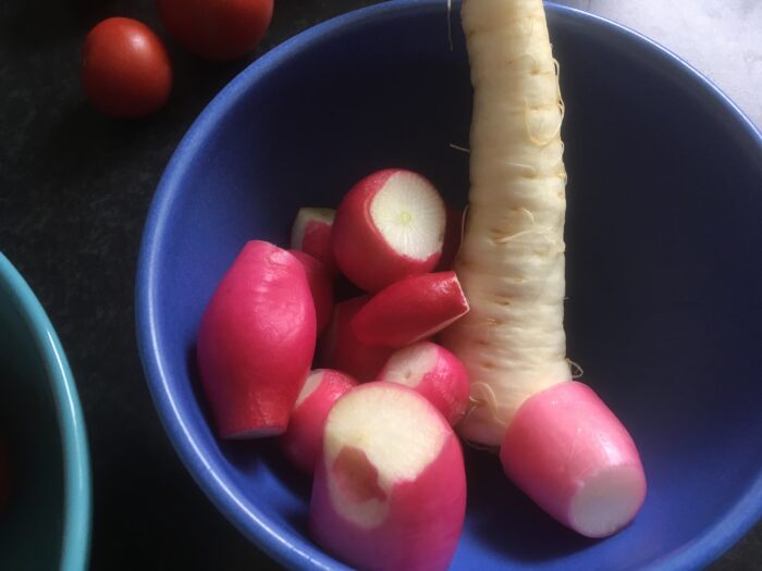 Kapkrusbär, palsternacka, rädisor och bönor!