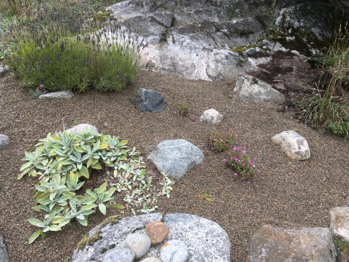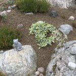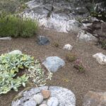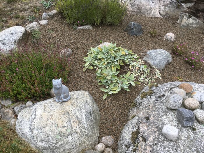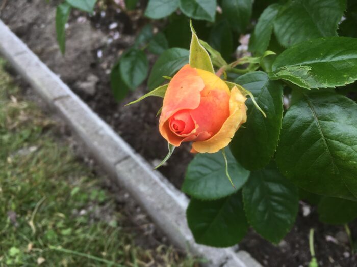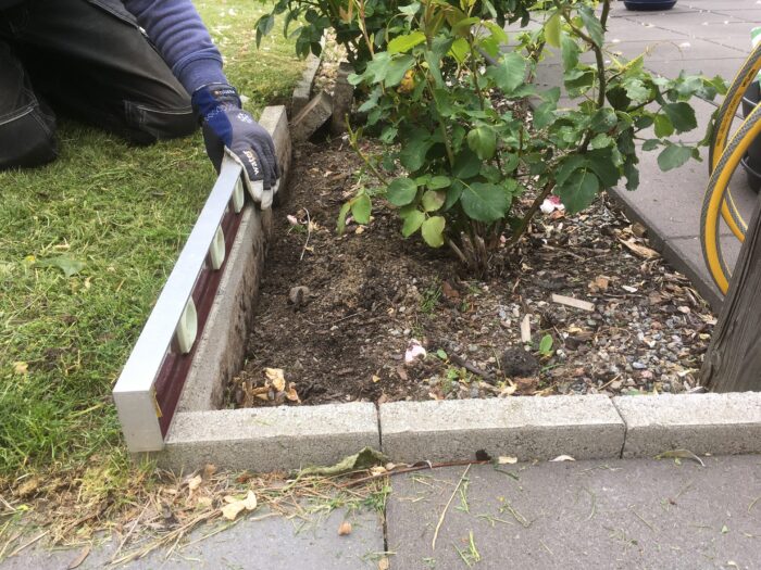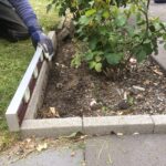 Vi försöker rätta upp stenkanten runt rosenrabatten, men orkar bara en bit. Fortsättning följer! Diverse omplantering av bl.a. Änglatrumpet och Kapkrusbär som vi fått.