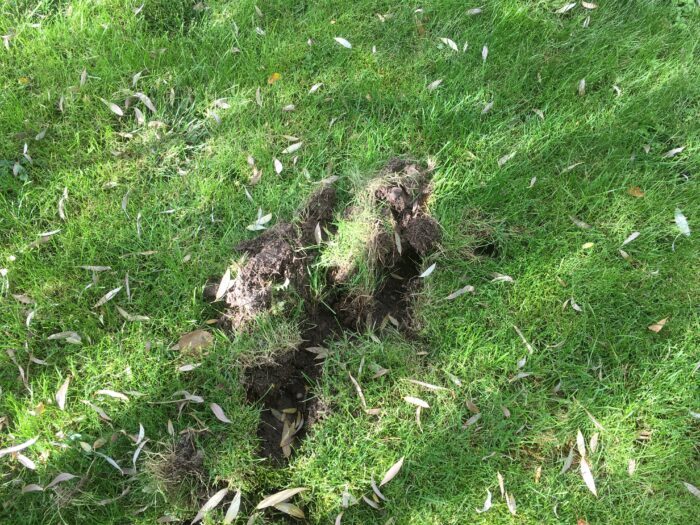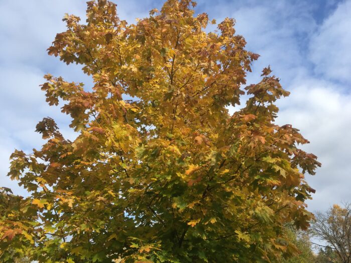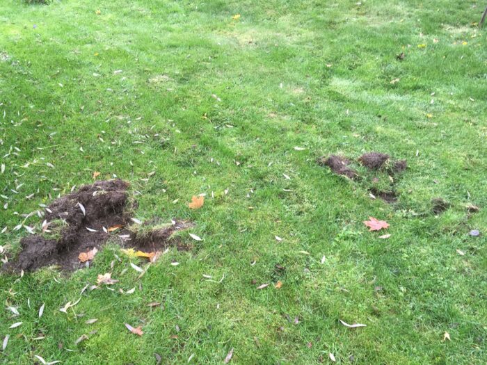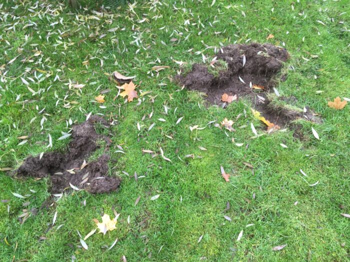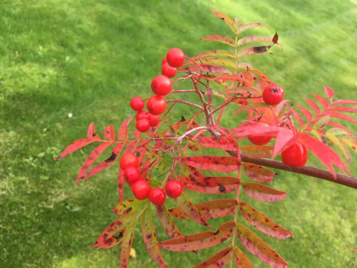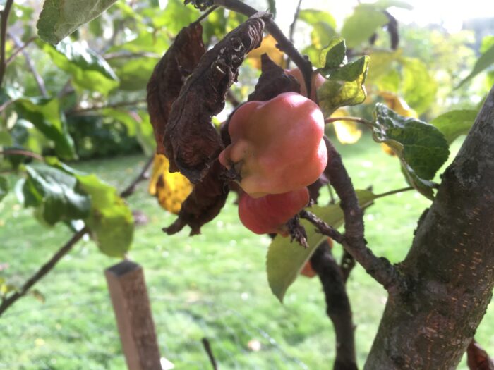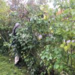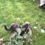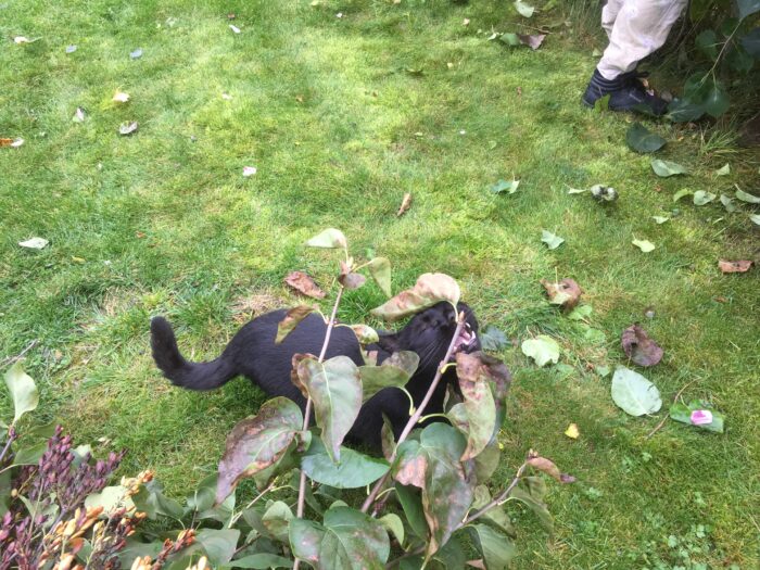 Mera vildsvinsbesök… 🙁 Och mera jobb med syrénhäcken – nu med hjälp av Moses och vår ”trädgårdscoach”. Och ser man på: ett par skrynkliga Åkerö-äpplen återfinns på trädet… Mozartrosorna blommar fortfarande, och lönnen skiftar vackert i gult och orange. Det är höst!